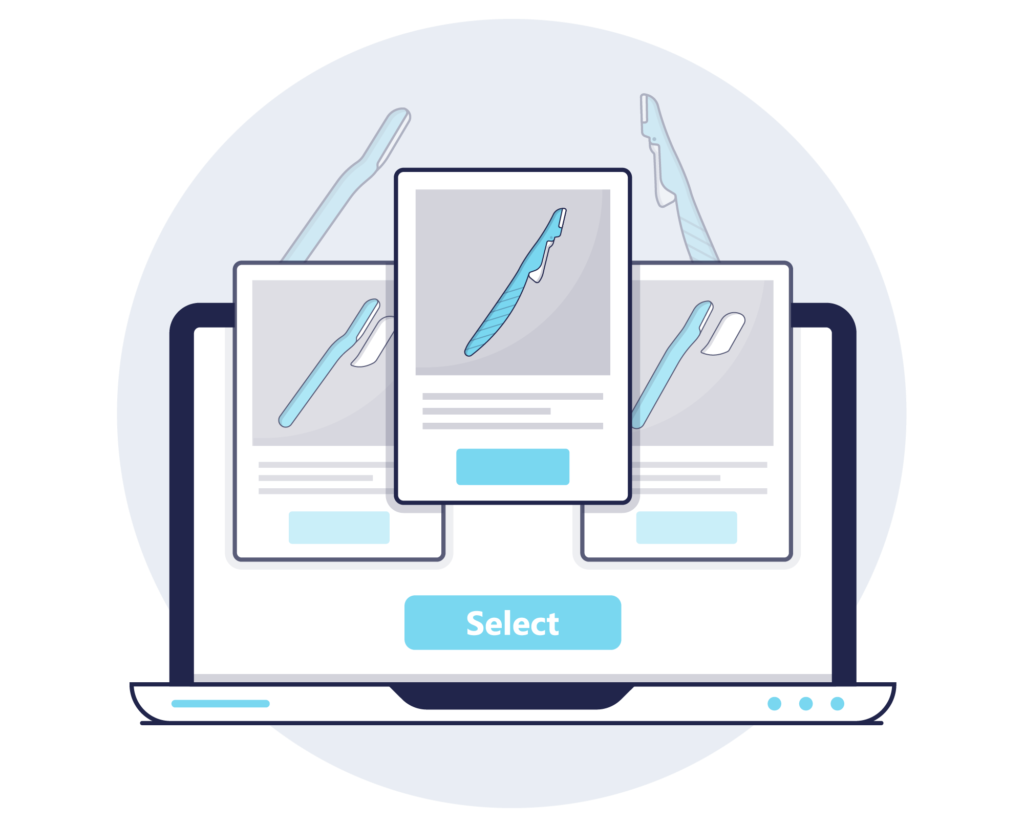 かみそり製品の試作品を作成し、ホルダー カラー・形状・刃の種類などパーツごとに確認していただきます。