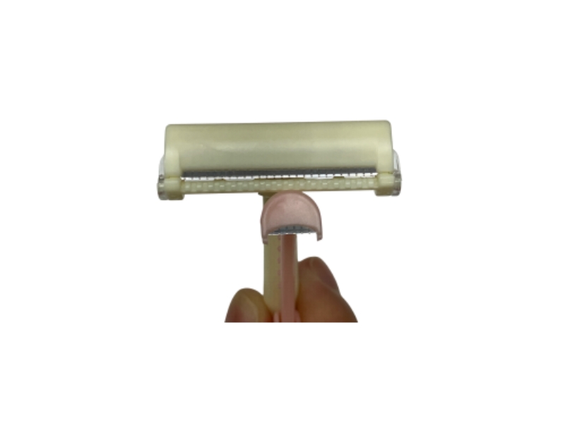 弊社通常サイズのかみそりと比べて1/3以下のサイズなので小回りが利き、通常サイズのかみそりでは届きにくい部位の処理に最適です。